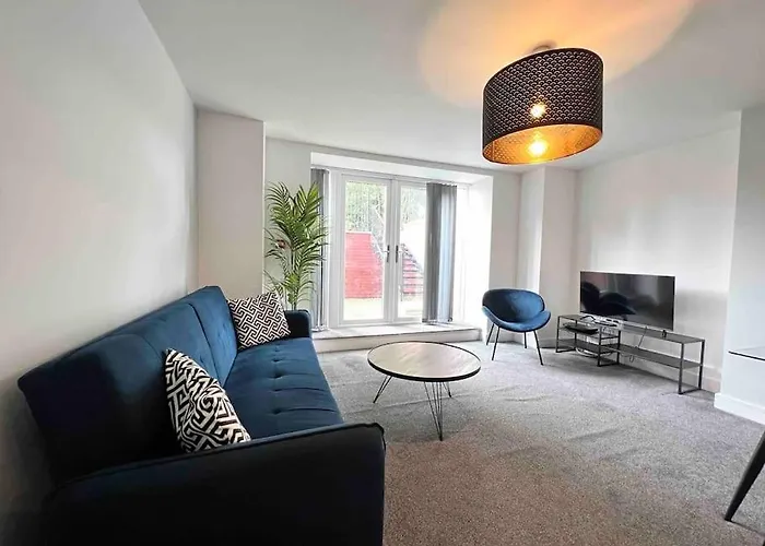 Das Free Parking - Lovely 2-Br Flat Near Salford Royal bietet seinen Gästen die Annehmlichkeiten von Selbstversorgern, wie eine komplette Küche und einen Essbereich. Der Flughafen Manchester ist ebenfalls in 19 Fahrminuten zu erreichen. Dieses Apartment verfügt über eine Terrasse, die für optimalen Komfort sorgt.